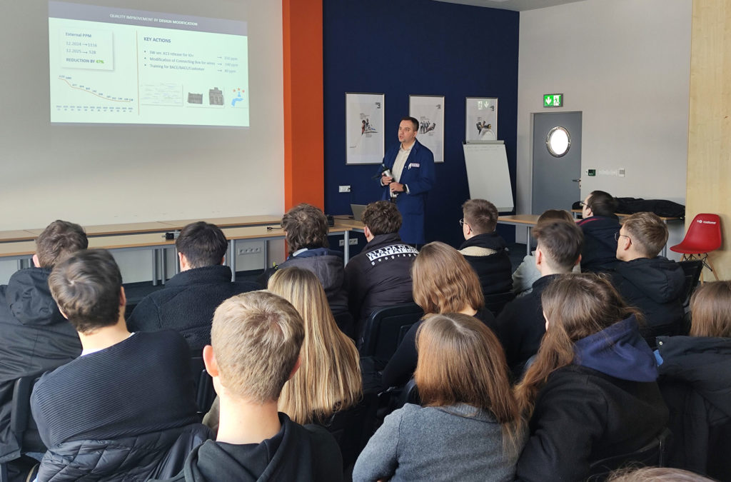 Podczas spotkania uczestnicy poznali historię Sopem, zakres działalności firmy oraz jej strategiczne znaczenie w strukturze Somfy. Studenci mieli również okazję porozmawiać z przedstawicielami działów jakości, B+R oraz HR, co pozwoliło im lepiej zrozumieć różnorodne ścieżki rozwoju zawodowego w branży.